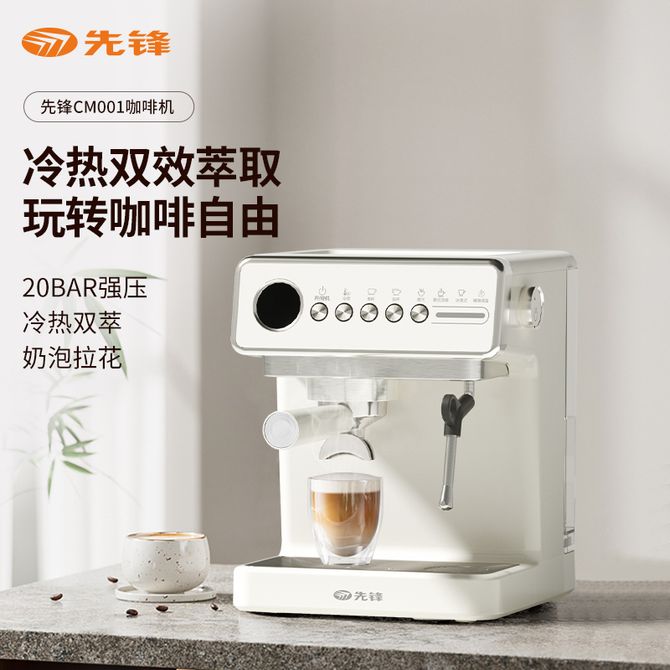 先锋 咖啡机冷热双效萃取家用高颜值咖啡机一键智能萃取咖啡机 一键智能萃取 五键操作面板 20BAR强压 冷热双萃 奶泡拉花 兑换价格 30400 里程 会员卡别 终身白金卡 白金卡 金卡 银卡 普通卡 儿童卡 服务 由 北京致诚博雅贸易有限公司 发货并提供售后 颜色: 其他 购买数量: 件 库存件 配送地址: 立即购买 加入购物车 成功添加到购物车 关闭 购物车共有 种商品 总金额为: 组合销售 产品介绍 产品规格 售后服务 产品咨询 发现好货 柏翠/Petrus 小白醒醒 浓缩意式咖啡机 1.2L可拆卸水箱 稳压萃取 家用小型半自动蒸汽打奶泡 26100 里程 磨客 咖啡机家用意式小型半自动花式浓缩咖啡蒸汽打奶泡一体泵压式高压萃取多功能奶泡机MK-382米白色 11500 里程 东菱/Donlim 触控咖啡机研磨一体机 智能恒温美式全自动滴滤式咖啡壶DL-KF1061 17300 里程 小熊/Bear 咖啡机美式 家用滴漏式全自动迷你小型咖啡粉泡茶两用办公室煮茶机KFJA06K1 4400 里程 东菱Donlim 触控研磨一体咖啡机 智能恒温美式全自动滴滤式咖啡壶DL-KF1061 19200 里程