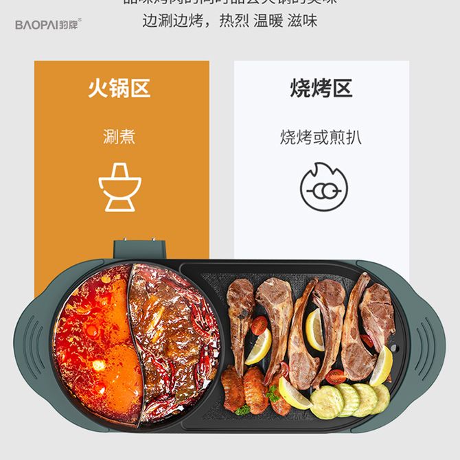 豹牌 烤涮一体炉烧烤盘2.5L鸳鸯火锅 鸳鸯火锅配烤盘设计 兑换价格 6200 里程 会员卡别 终身白金卡 白金卡 金卡 银卡 普通卡 儿童卡 服务 由 万宸健康家电精品馆 发货并提供售后 颜色: 其他 购买数量: 件 库存件 配送地址: 立即购买 加入购物车 成功添加到购物车 关闭 购物车共有 种商品 总金额为: 组合销售 产品介绍 产品规格 售后服务 产品咨询 发现好货 苏泊尔(SUPOR)空气炸锅 家用多功能4.2L大容量 烤箱薯条机 无油烟电炸锅 大功率 无油低脂煎炸锅KJ42D811 6500 里程 苏泊尔(SUPOR)空气炸锅家用3L大容量电炸锅 蒸汽嫩炸多功能无油烟煎炸薯条机烤箱KD30DQ815 21700 里程 美的/Midea 空气炸锅 家用5升可视炸锅金属内腔体微蒸汽多功能智能双旋控温电炸锅 KZE5089 10900 里程 美的/Midea 空气炸锅 可视 不用翻面 金属内腔 蒸汽嫩炸 三档烘烤风力 5L KZC5089 10700 里程 小熊/Bear 空气炸锅 4D漩烤不用翻面 全自动 5L实用大容量 可视 蒸汽嫩炸 控油脱脂 炸烤箱一体机 9100 里程