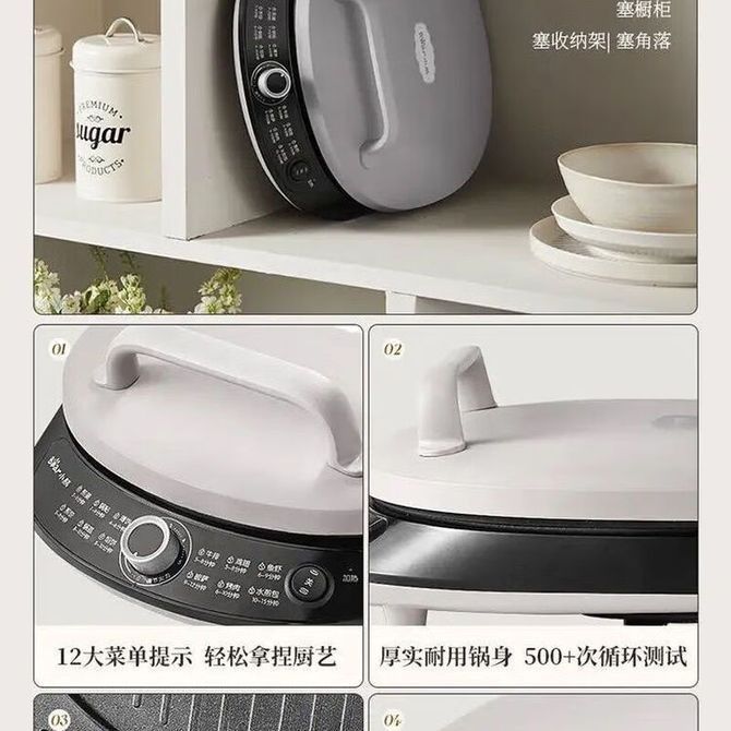 组合销售 产品介绍 产品规格 售后服务 产品咨询 发现好货 苏泊尔(SUPOR)电饼铛家用 双面加热煎饼铛煎烤机三明治机烙饼锅早餐机25mm加深烤盘火力可调JD31A847A 6500 里程 苏泊尔(SUPOR) 电饼铛 自动煎烤机 电火锅多功能 加大加深60mm双加热烙饼 锅面煎饼电饼档 两档火力 JT30A818 5700 里程 苏泊尔(SUPOR)电饼铛家用双面加热电饼档煎烤机烙饼机双面悬浮加热早餐机三明治机JJ30A648-Q 5700 里程 美的(Midea)电饼铛家用智能双面加热煎烤机烙饼机蛋饼机薄饼机煎饼烙饼锅JHN30F 4800 里程 奥克斯 电饼铛家庭用新款双面加热加大尺寸加深烤盘烙饼专用锅自动控温断电煎饼锅早餐机 5200 里程