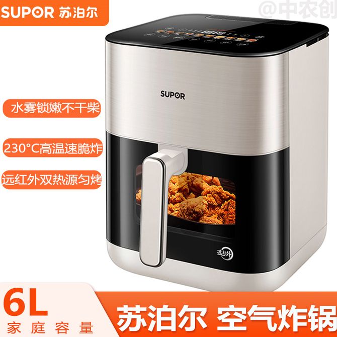 苏泊尔(SUPOR) 空气炸锅 家用6升大容量可视化免翻面烤箱多功能远红外双热源匀烤薯条机电炸锅 6L容量;远红外双热源匀烤 230°C超高温速脆炸 兑换价格 24800 里程 会员卡别 终身白金卡 白金卡 金卡 银卡 普通卡 儿童卡 服务 由 中农创家电生活馆 发货并提供售后 颜色: 其他 购买数量: 件 库存件 配送地址: 立即购买 加入购物车 成功添加到购物车 关闭 购物车共有 种商品 总金额为: 组合销售 产品介绍 产品规格 售后服务 产品咨询 发现好货 美的/Midea 空气炸锅 5L可视窗口免翻面电炸锅 双旋钮控时控温 食品接触不粘涂层 MF-KZE5089 8700 里程 荣事达5.5L大容量 家用智能触控多功能空气炸锅 RS-AF181L 10900 里程 美的/Midea 空气炸锅 5L家用大容量 可视窗口 免翻面 蒸汽嫩炸 金属内腔 多功能智能精准控温 电炸锅KZC5089 5L 10700 里程 美菱/MELNG 空气炸锅家用大容量炸锅6L智能控温不粘内胆MZG-503 机械款 7000 里程 苏泊尔(SUPOR) 空气炸锅 5.3L 电炸锅家用炸鸡薯条机蒸汽嫩炸大容量薯条机可视化空气炸锅 KJ53D800A 8300 里程