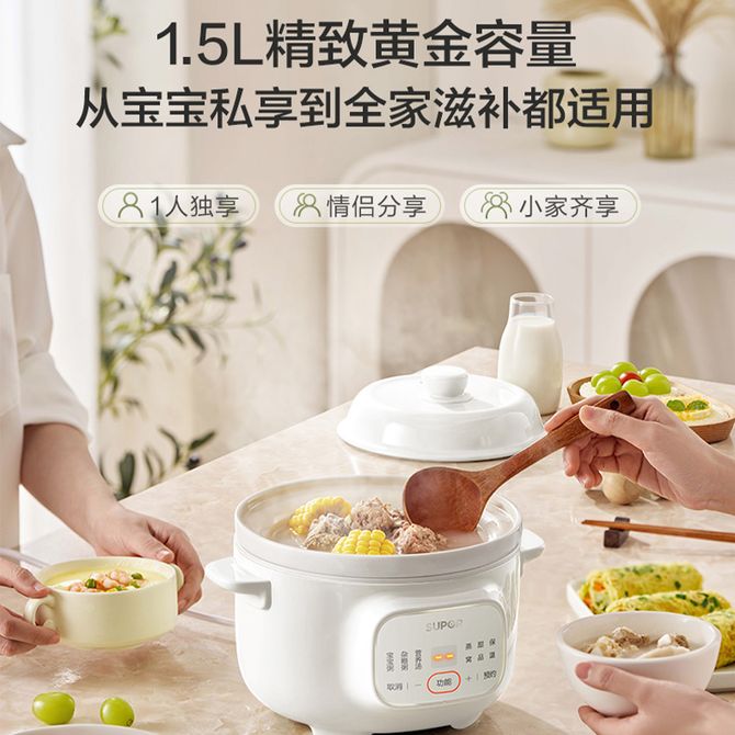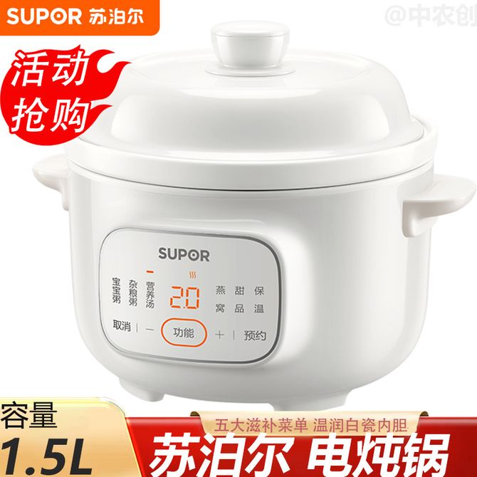苏泊尔(SUPOR) 电炖锅 家用1.5L精致容量多功能菜单隔水炖汤盅白瓷内胆电炖蛊电炖锅 1.5L精致容量;五大滋补菜单 温润白瓷内胆 兑换价格 6500 里程 会员卡别 终身白金卡 白金卡 金卡 银卡 普通卡 儿童卡 服务 由 中农创家电生活馆 发货并提供售后 颜色: 其他 购买数量: 件 库存件 配送地址: 立即购买 加入购物车 成功添加到购物车 关闭 购物车共有 种商品 总金额为: