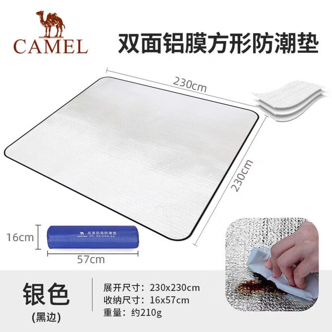 骆驼/Camel 户外露营铝膜防潮垫加厚便携野餐垫帐篷家用防水睡垫 银色黑边2.3*2.3m 骆驼 双面铝箔方形防潮垫 银色黑边2.3*2.3m 兑换价格 1700 里程 会员卡别 终身白金卡 白金卡 金卡 银卡 普通卡 儿童卡 服务 由 亿宇安百户外专营店 发货并提供售后 颜色: 银色 购买数量: 件 库存件 配送地址: 立即购买 加入购物车 成功添加到购物车 关闭 购物车共有 种商品 总金额为: