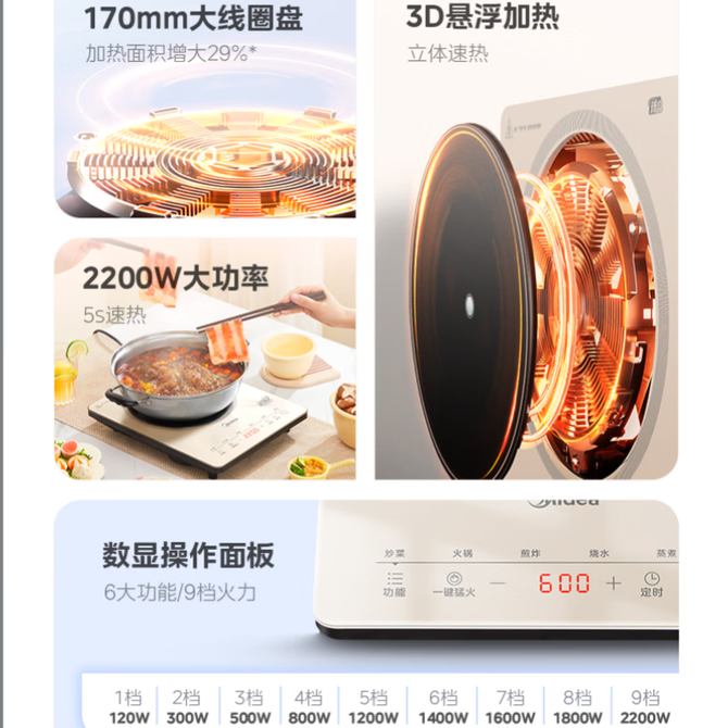 美的/Midea 电磁炉 2200W大功率 微晶面板 匀火加热 170mm大线圈盘 智能定时 数显 微晶玻璃 线下同款 MC-22TA01 单机 1.170mm大线圈盘,加热面积增大29%; 2.3D悬浮加热,立体速热; 3.2200W大功率,5s速热; 4.数显操作面板,6大功能/9档火力; 兑换价格 12900 里程 会员卡别 终身白金卡 白金卡 金卡 银卡 普通卡 儿童卡 服务 由 小稚家用电器馆 发货并提供售后 颜色: 其他 购买数量: 件 库存件 配送地址: 立即购买 加入购物车 成功添加到购物车 关闭 购物车共有 种商品 总金额为: