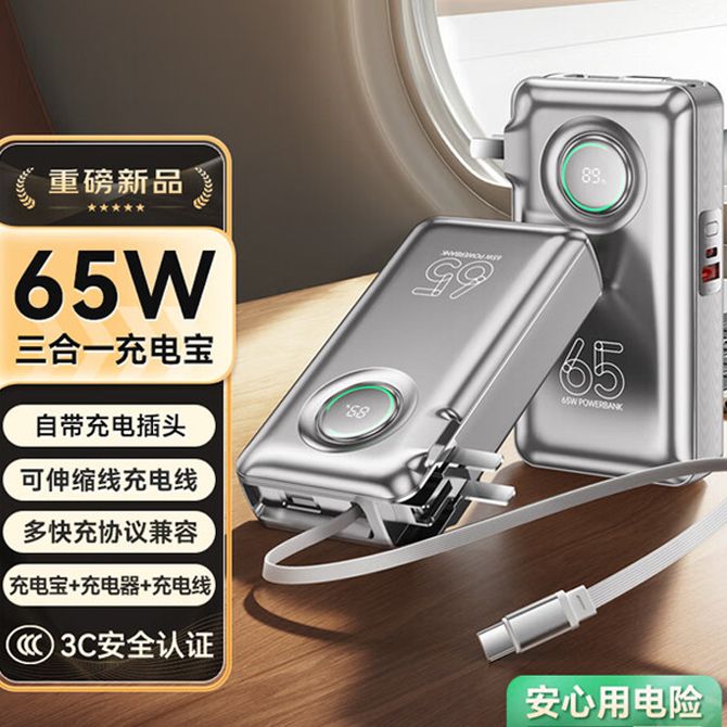 毕亚兹/Biaze 3C认证充电宝20000毫安三合一自带伸缩线65W快充移动电源YD73-20 三合一超能快充出行一个就够 快充新形态 适用场景广 轻巧便携 兑换价格 8600 里程 会员卡别 终身白金卡 白金卡 金卡 银卡 普通卡 儿童卡 服务 由 本原智选数码科技 发货并提供售后 电池容量: 10001mAh-20000mAh 颜色: 银色 购买数量: 件 库存件 配送地址: 立即购买 加入购物车 成功添加到购物车 关闭 购物车共有 种商品 总金额为: 组合销售 产品介绍 产品规格 售后服务 产品咨询 发现好货 ZNNCO 充电宝20000毫安时超薄小巧迷你自带线大容量快充移动电源便携苹果华为小米2万mAh手机 4200 里程 雷摄 T68S【3C认证可上飞机】充电宝10000毫安 移动电源 22.5W快充丨1万毫安丨多口输出 1700 里程 睿量/Remax 磁吸无线充电宝 Magsafe快充 5000mAh超薄小巧便携移动电源 手机背夹迷你移动电源 适用于苹果华为小米手机 RPP-107 4600 里程 纽曼(Newmine) 自带四线充电宝 3C认证 LED智能数显10000毫安移动电源 AL03 经典黑 3000 里程 雷摄 【3C认证】LS-YDZJ01 10000毫安 四线多功能移动电源 黑色 2000 里程