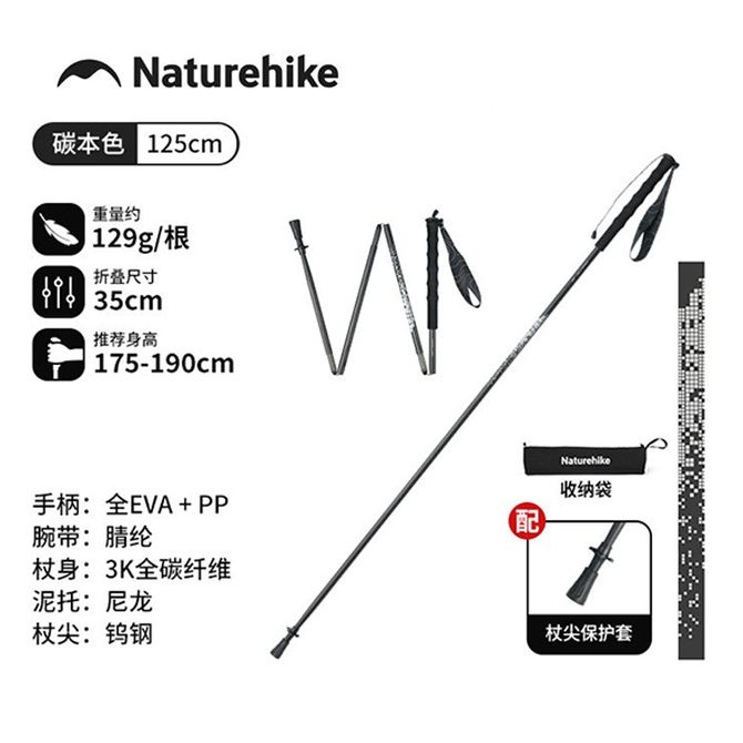 挪客(NatureHike) 登山杖 超轻专业爬山手杖 (125cm【碳纤维折叠款】 仅129g/单根装) 周一到周五 工作日发货 兑换价格 12800 里程 会员卡别 终身白金卡 白金卡 金卡 银卡 普通卡 儿童卡 服务 由 英科商贸运动户外 发货并提供售后 颜色: 黑色 购买数量: 件 库存件 配送地址: 立即购买 加入购物车 成功添加到购物车 关闭 购物车共有 种商品 总金额为: