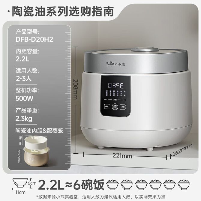 小熊/Bear 电饭煲 微压电饭煲2.2L多功能电饭锅升级不粘锅元釜内胆精煮饭煮粥12小时智能预约【微压元釜内胆】DFB-D20H2 2.2L容量;微电脑操作;陶瓷油内胆;配蒸笼; 兑换价格 10400 里程 会员卡别 终身白金卡 白金卡 金卡 银卡 普通卡 儿童卡 服务 由 小枫叶专营店 发货并提供售后 颜色: 白色 购买数量: 件 库存件 配送地址: 立即购买 加入购物车 成功添加到购物车 关闭 购物车共有 种商品 总金额为: