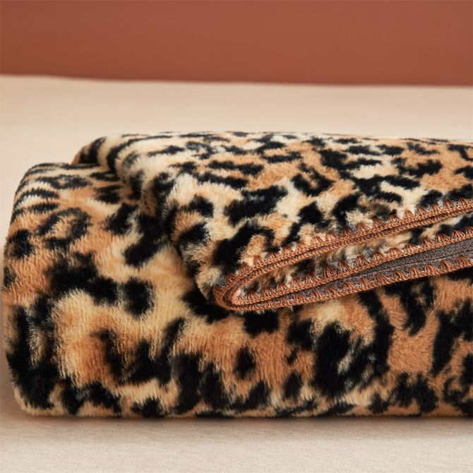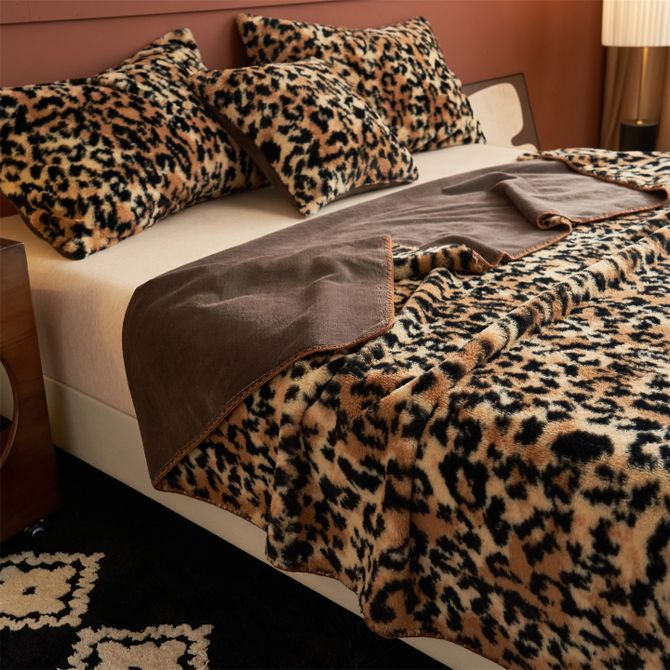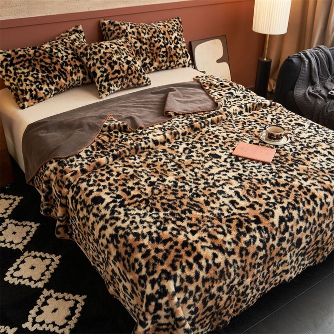 逸轩/yixuan 仿兔毛绒毛毯 软糯亲肤四季多用毯 经典豹纹