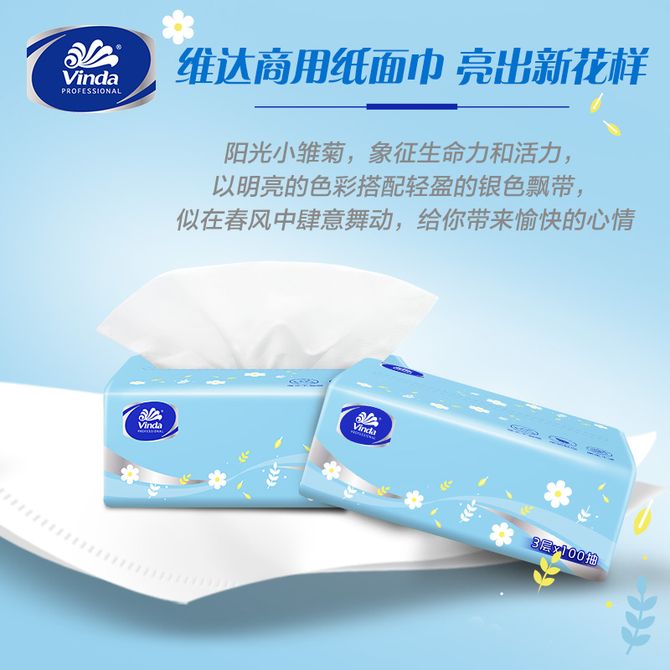 维达 抽纸家用纸巾 面巾纸卫生纸餐巾柔韧 VS2102 3层 100抽*24包