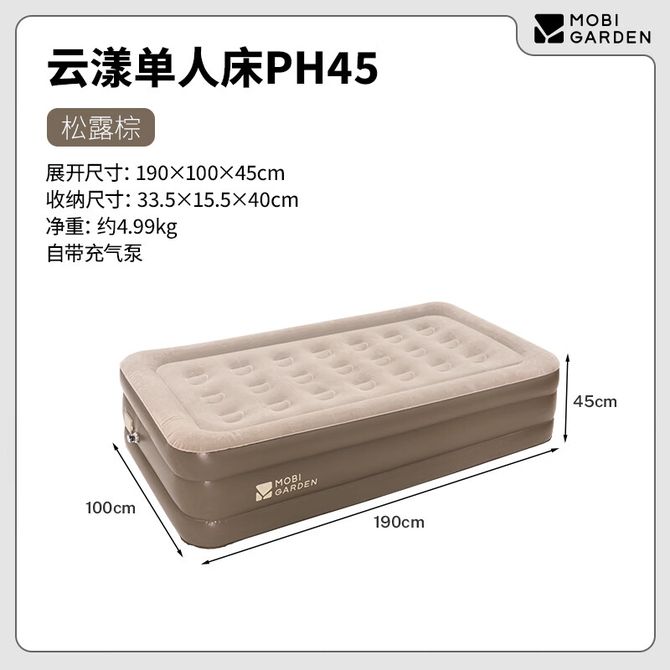 牧高笛(MOBIGARDEN) 云漾单人床PH45户外露营自动充气床垫气垫床 NX25663020 松露棕