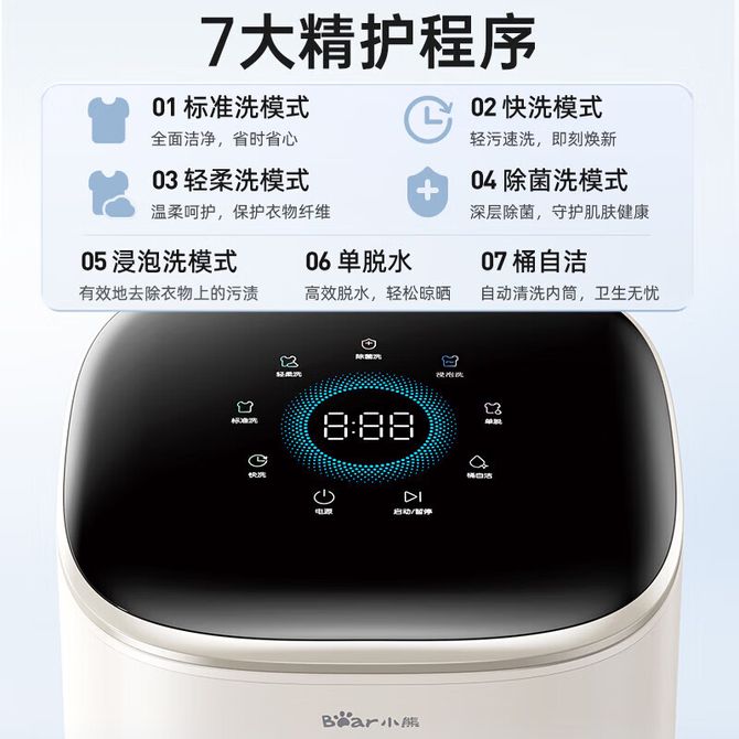 组合销售 产品介绍 产品规格 售后服务 产品咨询 发现好货 小熊/Bear 迷你洗衣机 XYJ-C05V5 8200 里程 小熊/Bear 内衣裤洗衣机 双重除菌3档可选 XYJ-C05V5 8000 里程 美的/Midea 0.5kg迷你洗衣机 内衣裤洗衣机小型 迷你洗衣机 高温除菌螨 轻音洗 MNB5VCAW0E 27400 里程 OIDIRE 迷你洗衣机 双桶便携清洗机 半自动小型清洗杯婴儿衣物迷你清洗机 出差旅行宿舍用迷你洗衣机 ODI-XYJ16 10000 里程 大宇 折叠迷你洗衣机便携旅游内衣袜子小型半自动清洗机 DYXY-ZD13 13000 里程