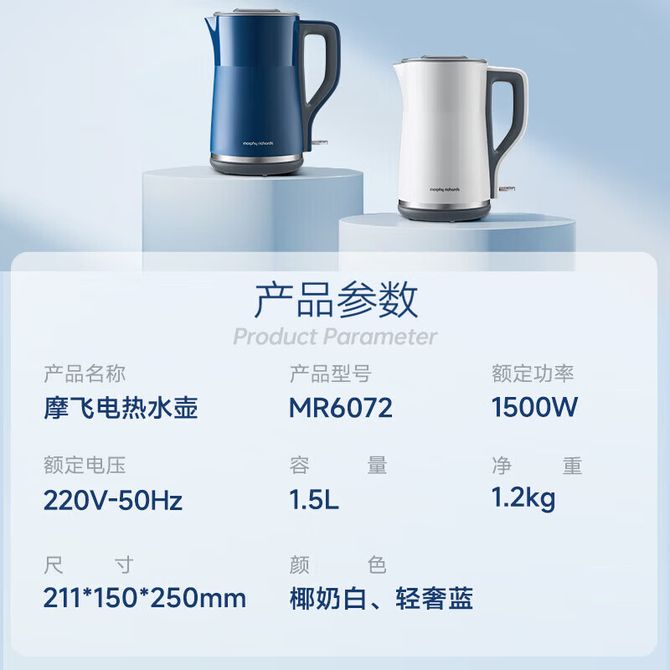 摩飞 /Morphy Richards 电热水壶MR6072【椰奶白】 烧水壶柔音电水壶双层防烫水壶无缝内胆全304不锈钢0塑热水壶1.5L 烧水壶柔音电水壶双层防烫水壶无缝内胆全304不锈钢0塑热水壶1.5L 兑换价格 7000 里程 会员卡别 终身白金卡 白金卡 金卡 银卡 普通卡 儿童卡 服务 由 纳华优选 发货并提供售后 颜色: 白色 购买数量: 件 库存件 配送地址: 立即购买 加入购物车 成功添加到购物车 关闭 购物车共有 种商品 总金额为: 组合销售 产品介绍 产品规格 售后服务 产品咨询 发现好货 苏泊尔(SUPOR)电水壶 1.7L 不锈钢/YL SW-17S13A 5700 里程 志高/Chigo 电水壶烧水壶1.8L大容量电热水壶双层防烫自动断电家用烧水开水壶不锈钢 电水壶 DC-A18F 1900 里程 美的/Midea 电热水壶家用大容量烧水壶热水壶双层防烫电水壶304不锈钢内胆自动断电分离式拔盖 MK-SH15X1-102 3000 里程 小熊/Bear 电水壶家用烧水壶 不锈钢自动断电恒温热水壶保温一体电热水壶1.5L容量 3500 里程 小熊/Bear 烧水壶电水壶热水壶电热水壶开水壶304不锈钢内胆双层防烫1.5L大容量ZDH-Q15U8 3000 里程