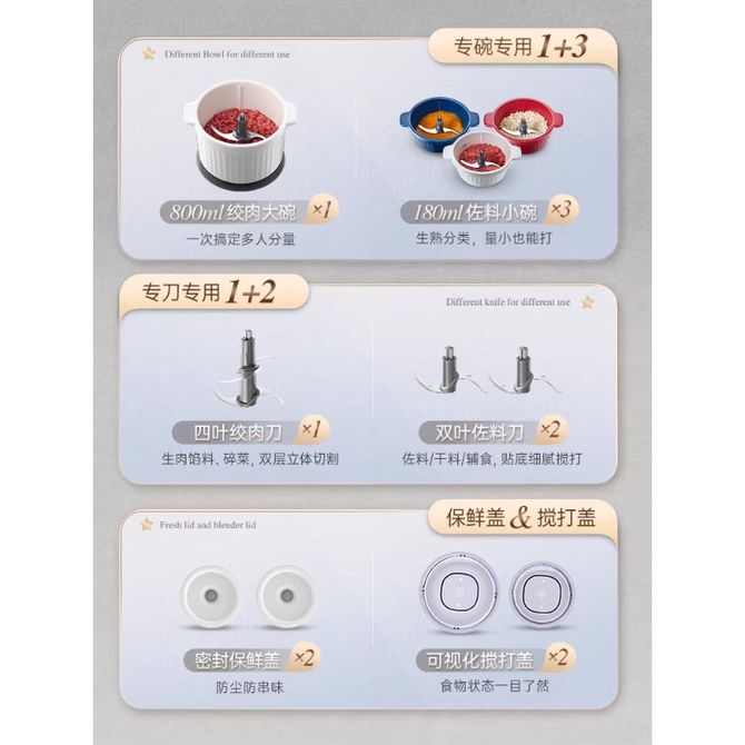 组合销售 产品介绍 产品规格 售后服务 产品咨询 发现好货 卡屋KAWU 绞肉机2.3L家用电动碎肉机PY-37930一副刀片 3300 里程 小熊/Bear 绞肉机家用绞馅机碎肉机电动多功能料理搅拌打肉饺子肉馅蒜蓉机切碎机QSJ-D03W5 4000 里程 苏泊尔(SUPOR) 绞肉机家用多功能电动碎肉机料理机 辅食肉馅机 蔬菜机 大容量 1.75L JR20-B175 3000 里程 卡屋kawu 蒜蓉器多功能电动无线蒜泥机 1700 里程 小熊/Bear 绞肉机2L家用绞馅机电动多功能料理搅拌机打肉机饺子肉馅蒜蓉机搅肉机 3500 里程