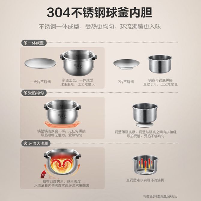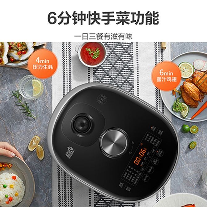 组合销售 产品介绍 产品规格 售后服务 产品咨询 发现好货 苏泊尔(SUPOR)电压力锅 6升大容量 智能触控 球釜双胆 开盖收汁 一键排压 SY-60YC8001Q 高压锅 16900 里程 美的/Midea 电压力锅家用5L大容量多功能高压锅双胆一键收汁智能预约不粘电高压锅电饭锅煮粥煲汤锅 一锅双胆【一键收汁入味】 YL50M1-702 10600 里程 苏泊尔(SUPOR) 5L电压力锅家用电高压锅双胆高压电饭锅煮饭智能预约 SY-50YC8186 11300 里程 美的/Midea 电压力锅 【一锅双胆】5L全自动家用智能预约 上蒸下煮 不粘双胆煲汤炖肉 YL50Q3-451 10900 里程 美的/Midea 电压力锅 高压锅家用电压力煲智能预约电饭煲大容量多功能定时预约电饭煲3-8人单胆旋钮款4L MY-E4809 8700 里程