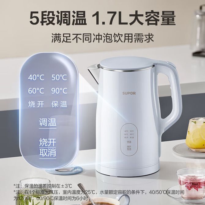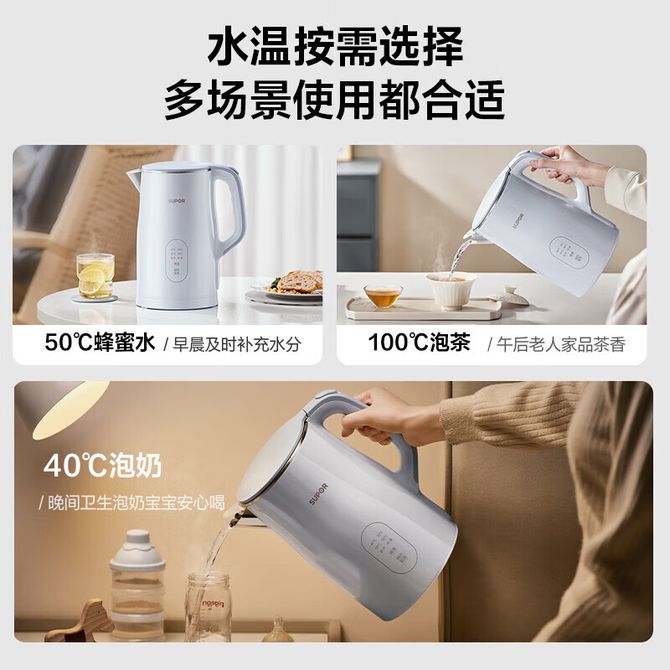 组合销售 产品介绍 产品规格 售后服务 产品咨询 发现好货 苏泊尔(SUPOR)电水壶 1.7L 不锈钢/YL SW-17S13A 5700 里程 志高/Chigo 电水壶烧水壶1.8L大容量电热水壶双层防烫自动断电家用烧水开水壶不锈钢 电水壶 DC-A18F 1900 里程 美的/Midea 电热水壶家用大容量烧水壶热水壶双层防烫电水壶304不锈钢内胆自动断电分离式拔盖 MK-SH15X1-102 3000 里程 小熊/Bear 电水壶家用烧水壶 不锈钢自动断电恒温热水壶保温一体电热水壶1.5L容量 3500 里程 小熊/Bear 烧水壶电水壶热水壶电热水壶开水壶304不锈钢内胆双层防烫1.5L大容量ZDH-Q15U8 3000 里程