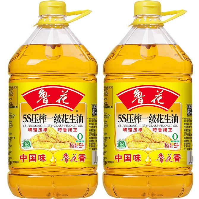 鲁花 5S-物理-压榨-一级-花生油 5L*2桶 香味浓郁