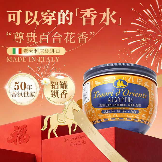 东方宝石/Tesori d' Oriente 埃及艳后香氛身体霜 300ml冰淇淋奶油质地护肤乳润肤乳液 身体香香的身体乳 保湿滋润 持久留香 兑换价格 3000 里程 会员卡别 终身白金卡 白金卡 金卡 银卡 普通卡 儿童卡 服务 由 上海耀嬉网络科技有限公司 发货并提供售后 化妆品容量: 300g/ml 购买数量: 件 库存件 配送地址: 立即购买 加入购物车 成功添加到购物车 关闭 购物车共有 种商品 总金额为: