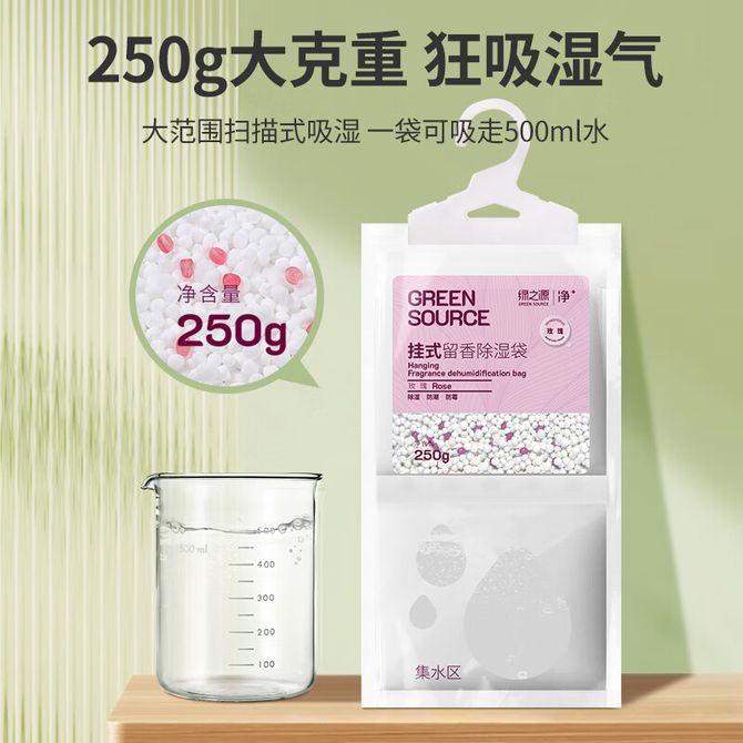 绿之源 可挂式除湿袋大容量衣柜宿舍除湿剂干燥剂吸湿包 挂式留香除湿袋(玫瑰香) 250g*10包 吸湿防潮,锁湿不渗,饱满实心球360°吸湿防霉,散发香气 兑换价格 2100 里程 会员卡别 终身白金卡 白金卡 金卡 银卡 普通卡 儿童卡 服务 由 燚购家居 发货并提供售后 颜色: 粉色 购买数量: 件 库存件 配送地址: 立即购买 加入购物车 成功添加到购物车 关闭 购物车共有 种商品 总金额为: 组合销售 产品介绍 产品规格 售后服务 产品咨询 发现好货 京东京造 除湿盒400ml*3盒 干燥剂除湿剂防潮剂除湿袋 室内衣服房间防潮除霉 1100 里程 京东京造 除湿桶750ml*2 除湿盒干燥剂除湿袋防潮剂吸湿防霉衣柜室内除湿 1800 里程 京东京造 冰箱除味剂 活性炭冰箱除味杀菌神器冰箱除臭剂冰箱除味盒140g*2 1100 里程 京东京造 奶昔固体清新剂 柠檬 3只装 空气清新剂 除臭剂 卫生间除臭 除味剂 香氛膏 1100 里程 京东京造 甲醛测试盒 除甲醛检测盒自测盒新车新房装修检测仪试纸 5盒装 1100 里程