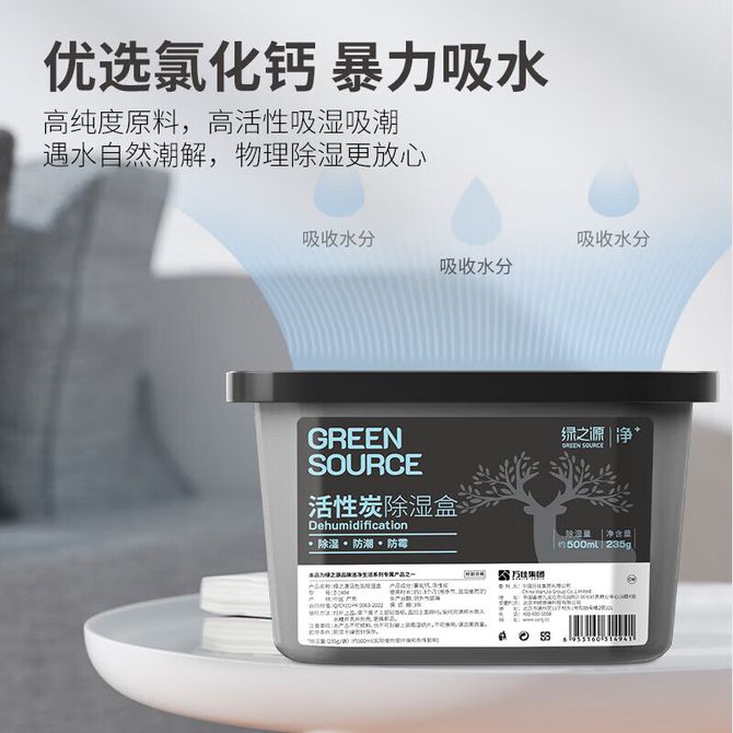 绿之源 除湿盒吸湿盒除湿干燥剂除湿桶吸潮剂室内房间汽车防霉防潮剂 除湿盒500ml*6桶【活性炭】 暴力吸水,球形颗粒360°迅速吸湿;除霉味、异味;锁水透气,不回渗;无香无味,母婴安全 兑换价格 2100 里程 会员卡别 终身白金卡 白金卡 金卡 银卡 普通卡 儿童卡 服务 由 燚购家居 发货并提供售后 颜色: 其他 购买数量: 件 库存件 配送地址: 立即购买 加入购物车 成功添加到购物车 关闭 购物车共有 种商品 总金额为: 组合销售 产品介绍 产品规格 售后服务 产品咨询 发现好货 京东京造 除湿盒400ml*3盒 干燥剂除湿剂防潮剂除湿袋 室内衣服房间防潮除霉 1100 里程 京东京造 除湿桶750ml*2 除湿盒干燥剂除湿袋防潮剂吸湿防霉衣柜室内除湿 1800 里程 京东京造 冰箱除味剂 活性炭冰箱除味杀菌神器冰箱除臭剂冰箱除味盒140g*2 1100 里程 京东京造 奶昔固体清新剂 柠檬 3只装 空气清新剂 除臭剂 卫生间除臭 除味剂 香氛膏 1100 里程 京东京造 甲醛测试盒 除甲醛检测盒自测盒新车新房装修检测仪试纸 5盒装 1100 里程