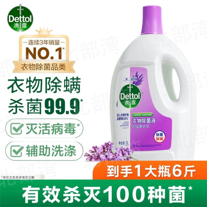 滴露/Dettol 衣物消毒除菌液 高效杀菌除螨除味内衣裤清洁 可配洗衣液消毒液用薰衣草3L 无荧光增白剂 99.9%深层杀菌 舒缓薰衣草味 兑换价格 3500 里程 会员卡别 终身白金卡 白金卡 金卡 银卡 普通卡 儿童卡 服务 由 广西北部湾网络科技有限公司 发货并提供售后 净含量: 其他容量 清洁剂容量: 其他容量 购买数量: 件 库存件 配送地址: 立即购买 加入购物车 成功添加到购物车 关闭 购物车共有 种商品 总金额为: