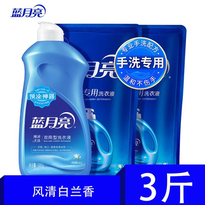 蓝月亮 手洗专用洗衣液套装 风清白兰 瓶装500g+袋装500g*2袋 部分商品可能进行包装更新,节假日发货可能会有延迟,还请多多谅解,更多商品请到店铺首页查看。 兑换价格 1800 里程 会员卡别 终身白金卡 白金卡 金卡 银卡 普通卡 儿童卡 服务 由 慈晨家居日用专营店 发货并提供售后 清洁剂容量: 其他容量 净含量: 其他容量 购买数量: 件 库存件 配送地址: 立即购买 加入购物车 成功添加到购物车 关闭 购物车共有 种商品 总金额为: 组合销售 产品介绍 产品规格 售后服务 产品咨询 发现好货 超能 西柚祛腥洗洁精1kg*2瓶 家用果蔬清洗剂 1200 里程 滴露/Dettol 滋润倍护洗手液500g*2两瓶装 1900 里程 滴露/Dettol 泡沫抑菌洗手液青柠香型250ml 1300 里程 蓝月亮 卫诺沁香花园香氛洁厕液 500g×6瓶 4100 里程 威露士 洗手液 倍护滋润250ml *2瓶 深入洁净有效抑菌温和滋润清洁双手 1100 里程