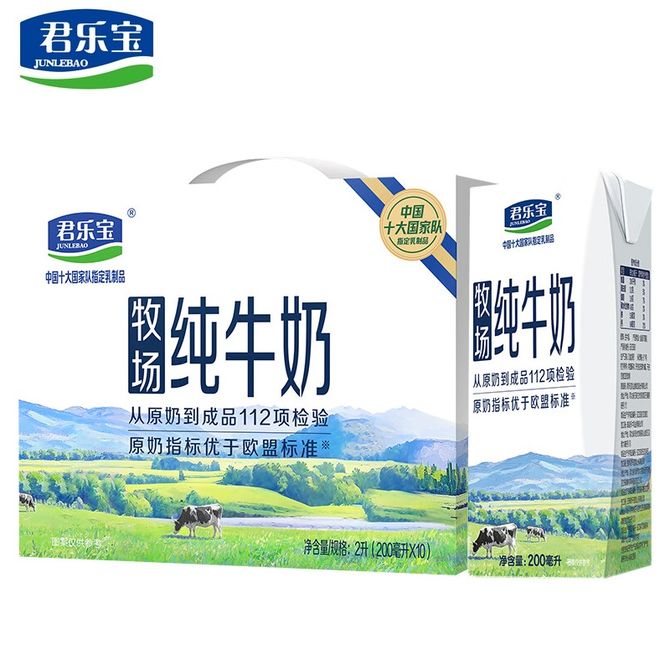 君乐宝(JUNLEBAO) 牧场纯牛奶200ml*10 3.7g原生高钙纯牛奶 家庭早餐奶 牧场纯牛奶200ml*10;严选牧场,优质奶源 兑换价格 3400 里程 会员卡别 终身白金卡 白金卡 金卡 银卡 普通卡 儿童卡 服务 由 铭钰食品专营 发货并提供售后 规格: 盒装 购买数量: 件 库存件 配送地址: 立即购买 加入购物车 成功添加到购物车 关闭 购物车共有 种商品 总金额为: 组合销售 产品介绍 产品规格 售后服务 产品咨询 发现好货 蒙牛 特仑苏纯牛奶苗条装250ml×12盒 2900 里程 三元 经典小方白全脂纯牛奶250ml*24盒牛奶 整箱 3400 里程 伊利金典纯牛奶250ml*12盒整箱 2200 里程 伊利 金典纯牛奶整箱 250ml*12盒 3.6g乳蛋白 原生高钙 礼盒装 1800 里程 特仑苏 新日期纯牛奶250ml*12盒 3.6g乳蛋白 礼盒装 京东/顺丰发货 2400 里程