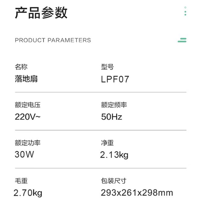 艾美特/Airmate 电风扇mini落地扇 LPF07