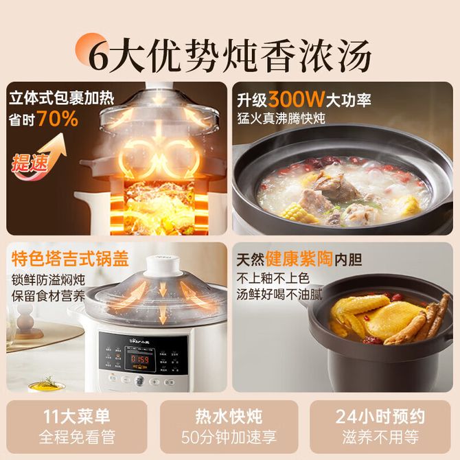 小熊/Bear 电炖锅 3L大容量家用原矿紫砂汤锅煲粥熬粥煮粥锅炖锅煲汤锅防溢锅设计 3L容量 11大菜单 热水快炖 24小时预约 兑换价格 7400 里程 会员卡别 终身白金卡 白金卡 金卡 银卡 普通卡 儿童卡 服务 由 中农创家电生活馆 发货并提供售后 颜色: 其他 购买数量: 件 库存件 配送地址: 立即购买 加入购物车 成功添加到购物车 关闭 购物车共有 种商品 总金额为: