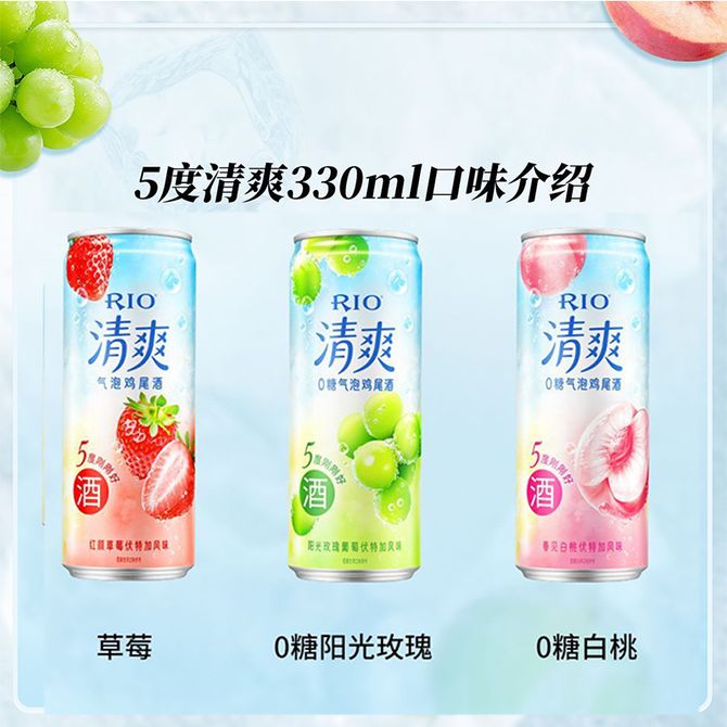 组合销售 产品介绍 产品规格 售后服务 产品咨询 发现好货 锐澳 (RIO)清爽鸡尾酒混合三联罐(葡萄+白桃+草莓)330ML*24罐 整箱 5400 里程 锐澳 (RIO)微醺3度预调 鸡尾酒低度 果酒整箱 330ml*24罐5种口味混合整箱装 6700 里程 锐澳 微醺3度整箱330ml*24罐预调鸡尾酒果酒【口味随机】 6700 里程 锐澳 【整箱】RIO 清爽5度玫瑰葡萄500ml*12罐(零糖) 3900 里程 锐澳 微醺3度 清新青提茉莉味330ml*24罐(整箱) 6800 里程