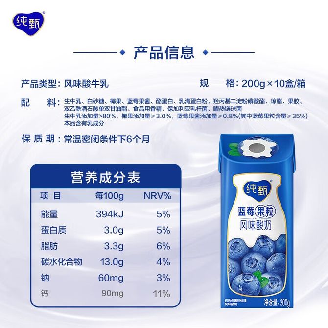 蒙牛 (新鲜日期)纯甄蓝莓果粒风味酸奶200g*10盒 送礼盒装 北美蓝莓果粒 蒙牛(新鲜日期)纯甄蓝莓果粒风味酸奶200g*10盒 送礼盒装 兑换价格 2100 里程 会员卡别 终身白金卡 白金卡 金卡 银卡 普通卡 儿童卡 服务 由 苏发食品商城 发货并提供售后 规格: 礼盒 购买数量: 件 库存件 配送地址: 立即购买 加入购物车 成功添加到购物车 关闭 购物车共有 种商品 总金额为: 组合销售 产品介绍 产品规格 售后服务 产品咨询 发现好货 蒙牛 特仑苏纯牛奶苗条装250ml×12盒 2900 里程 三元 经典小方白全脂纯牛奶250ml*24盒牛奶 整箱 3400 里程 伊利金典纯牛奶250ml*12盒整箱 2200 里程 伊利 金典纯牛奶整箱 250ml*12盒 3.6g乳蛋白 原生高钙 礼盒装 1800 里程 特仑苏 新日期纯牛奶250ml*12盒 3.6g乳蛋白 礼盒装 京东/顺丰发货 2400 里程
